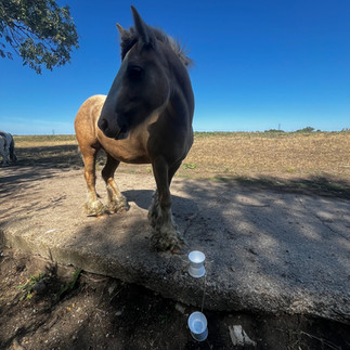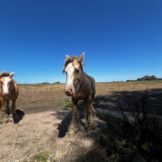 The following day, however, was a completely different experience, one that restored and fortified my resolve in doing what I am doing. It was a bright, sunny, and relatively warm day. This is of importance, because it resulted in a completely unique soundscape and experience. It was also fairly windy. As I set down in the creek to record, I needed to adjust the microphones. The Styrofoam mics were not balanced and the right channel was a few decibels lower in volume, leading me to believe the piezo element was not flush with the Styrofoam container. As I say down on the edge of the concrete path that led to the edge of the creek I was engrossed in getting things right. I was not listening. I was engrossed in trouble shooting as one often finds oneself doing in the field. After a few minutes, I heard an odd sound... I turned around and lo and behold, the entire family of ponies, maybe around 8 or 9, with a foal included, was gathered around me! I was immediately nervous and stood up, heart beating. I had this uncanny feeling as they were all staring at me, but moreso at all the bizarre microphones and equipment I had. They immediately began investigating my shotgun mic in its furry windshield, burying their noses in them and everything else I had laid out, but with a curiousity that I soon realized was a true sign of intelligence. "What is this?" "What furry animal is this microphne and its non-animal smell?" More importantly it dawned on me that they had seen and recognized at me from a distance the day before, so this was their way of saying, "hey, you're back... who are you and what are you doing???" I am doing strange things indeed, fellow denizens of the field! I was frozen for several minutes and also scrambling to collect my expensive microphones and even the waste ones from accidentally being trampled or bitten. I had no idea what to expect. After about 3 minutes (an eternity) and saying "no no" as gently as possibly without any quick movements, the ponies eventually just kept staring at me. At that point, as a silly human, it dawned on me. I was standing between them and the creek. "ohhhh, sorry everyone. I am blocking access to your watering hole!". It was almost as if I realized I had bad manners. As soon as I got back up on the concrete path, the ponies began to drink. As it was a hot day, I think they graciously forgave my bad manners and were conscious that I was an ok biped. However, after drinking they remained with me in the shade for several hours! If I slowly moved away, they followed me. This made me quite nervous, as I had no microphones in hand and didn't quite know what to do. I eventually found a narrow trail, dense with weeds that they didnt follow me entirely into, though they just kept on staring. Oh the staring! Not sure how long this standoff would last. Just then, I heard a distant whistle and at that moment the entire group took off in a gallop. I assumed this was the owner calling, though more and more, in afterthought, I believe these ponies are wild.